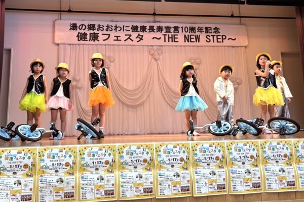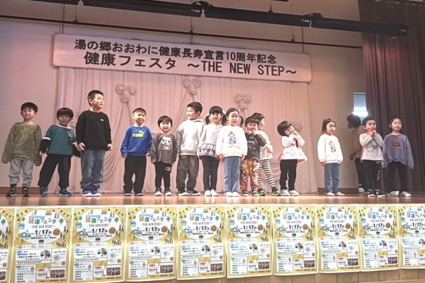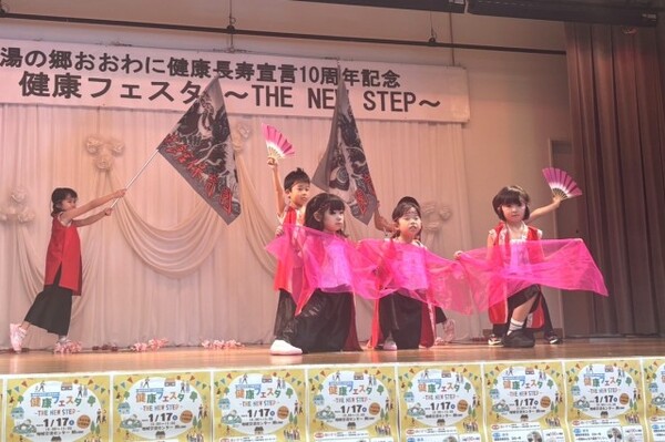 1月17日、大鰐長寿宣言10周年記念『健康フェスタ』にお招きいただき、さくら組年長さんがよさこいと一輪車ゆうぎを、さくら組年中さんとひまわりさんがおおわに体操を披露しました。たくさんのお客さんの前でちょっぴり緊張気味の子ども達でしたが、会場のみなさんの元気と健康を願いながら一生懸命頑張りました!子ども達の頑張りが、みなさまにとって健康を考えるきっかけとなってくれたら嬉しいです♡♡♡