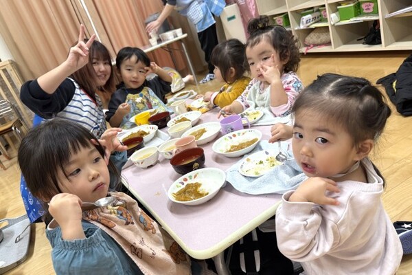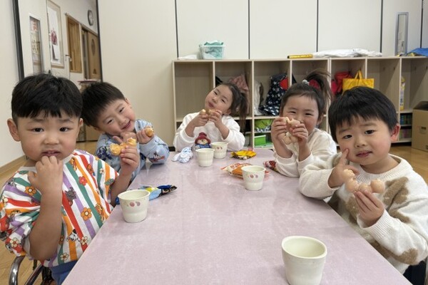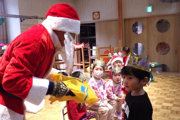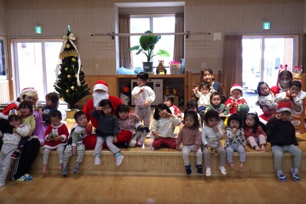 12月24日、クリスマス会とお誕生会が行われました。12月のお誕生児は7人のお友達!恥ずかしながらも頑張ってインタビューに答え、今月はサンタさんがお誕生日プレゼントを持って来てくれました!!サンタさんと記念撮影をしたあとイス取りゲームを楽しみ、ホールで会食パーティーをしました。クリームパスタや唐揚げなど子ども達の大好きなメニューだったので、みんなたっぷりおかわりしましたよ〜。12月生まれのお友達、お誕生日おめでとうございます♡♡♡