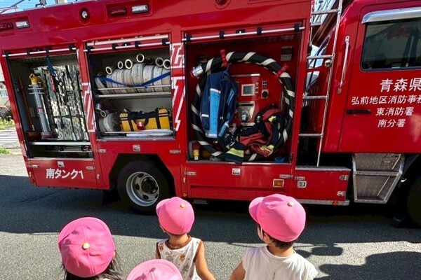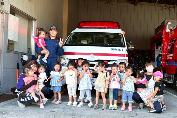 9月12日、たんぽぽ組の大きいお友達はいつもより早めにお昼寝から目覚め、憧れの消防署と交番に行ってきました!!突然お邪魔したにも関わらず、快く見学させていただきました!消防車、救急車を見せていただき、運転席にも乗ってみたり♪パトカーにも乗せていただき、貴重な経験ができました!!南分署のみなさん、大鰐交番のみなさんありがとうございました!たんぽぽさんよかったね〜♡