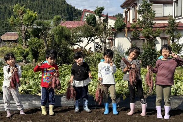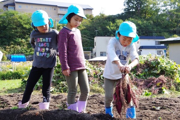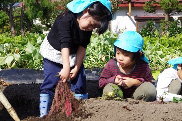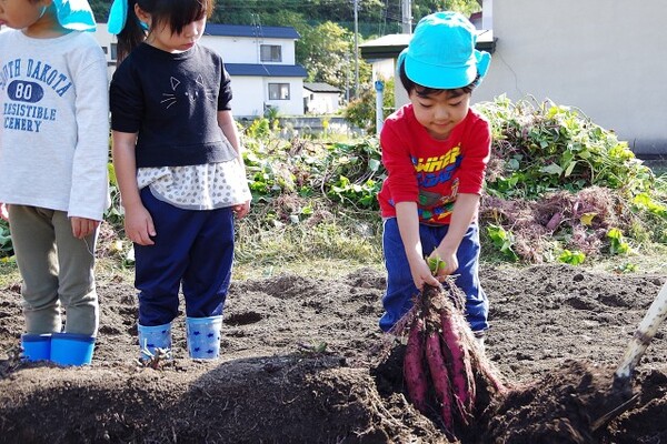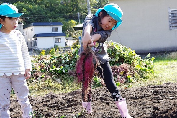 10月15日、さくら組年長さんはさつまいも掘りに出掛けました。長靴を履き、立派な畝で育ったさつまいものツルを順番に引っ張り、大きなさつまいもが獲れました〜♪さつまいもの重さと大きさにビックリの子ども達。汗をかきながら頑張りました!!ご招待いただきありがとうございました!貴重な体験ができました☆