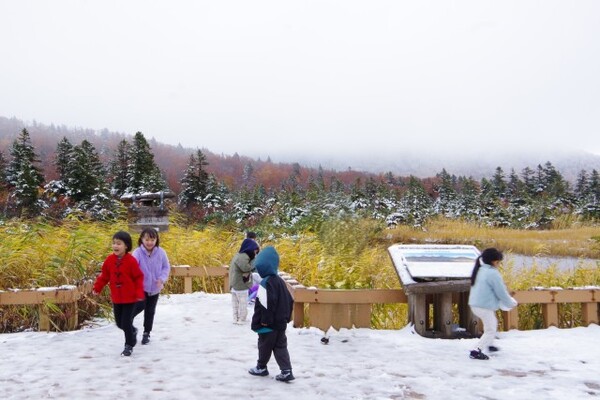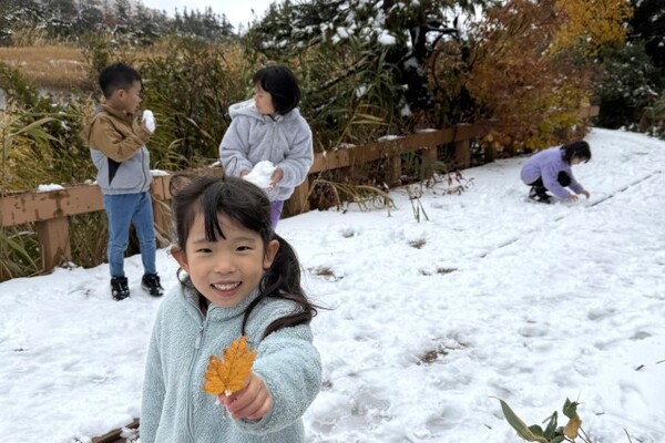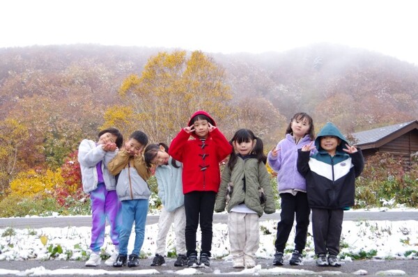 10月21日、さくら組年長さんは八甲田へ紅葉狩りに出掛けました。雨予報であいにくの曇り空でしたが八甲田へ向かう道中からとっても紅葉がきれいで、城ヶ倉大橋を過ぎたあたりの道路には雪も。ロープウェイに行ってみたものの1時間待ちだったため断念してドライブへ!!トイレ休憩で立ち寄った酸ヶ湯インフォメーションセンターでは積もった雪に大興奮の子ども達!もちろん雪合戦が始まりました!睡蓮沼にも立ち寄り、紅葉と雪のコラボは見事でしたが子ども達は紅葉より雪(笑)その後バスで景色を楽しみながら園長先生行きつけの『レストハウス箒場』さんへ。ラーメン・カレーライスをペロリとたいらげ、おでんもいただきました〜♪とっても美味しかったです!箒場さんありがとうございました!!最後に城ヶ倉大橋で記念撮影をして保育園へ。バスでは子ども達のカラオケで盛り上がり、とっても賑やかでした!楽しかったね〜