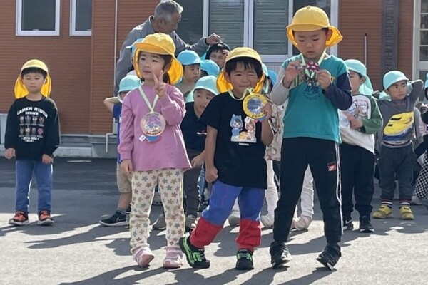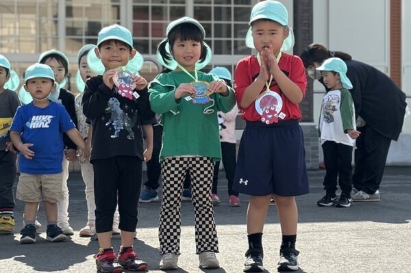 10月17日、さくら・ひまわり組さんのマラソン大会が行われました。戸外あそびでマラソンを取り入れ、体力づくりをしてきた子ども達。体操をしたあと順番によーいドン!!先導してくれた足の速いお父さんを追いかけ、一生懸命走りました!!沿道ではたくさんの保護者の方が応援してくれ、子ども達は長い距離を最後まで走り切りました!上位3名は園長先生からメダルをもらって喜び合い、その一方で悔しくて涙する子も・・・。悔しい気持ちをバネに次はなわとび大会頑張ろうね!お忙しい中足を運んでくださいました保護者のみなさま、応援ありがとうございました!先導してくれたお父さん助かりました!ありがとうございました!